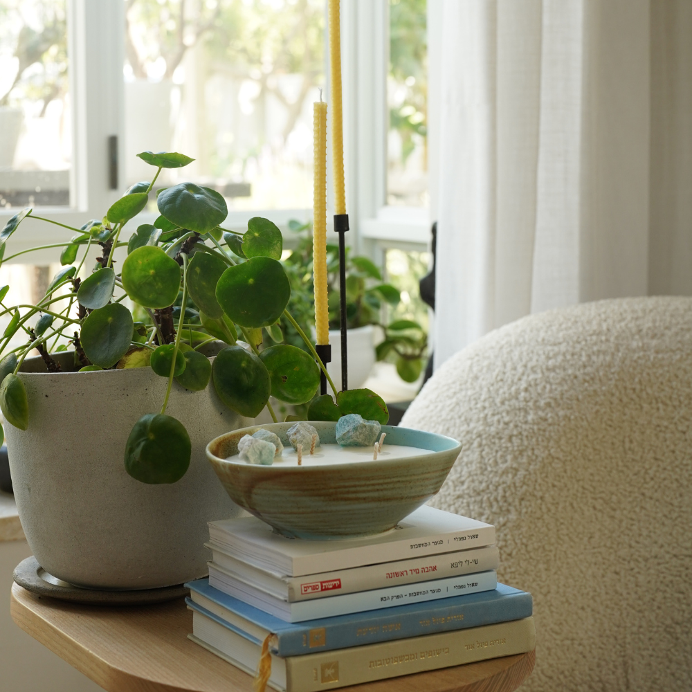 הנרות מסייעים ביצירת אווירה רגועה ונעימה בחלל.