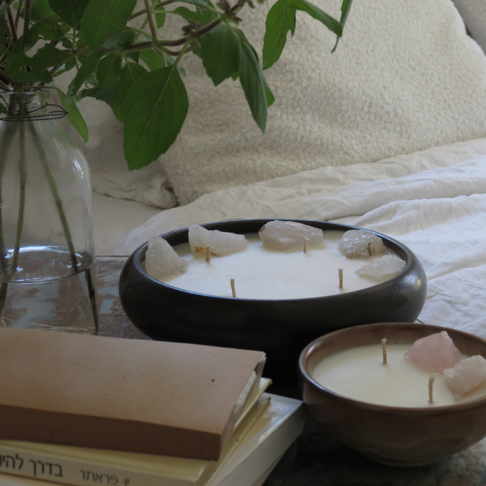 הנרות שלנו עשויים משעוות סויה 100% טבעית והם ידידותיים לסביבה ולגופנו,